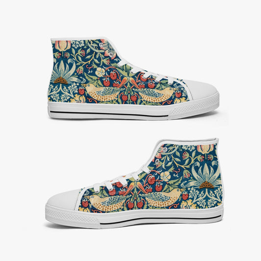Flowered Sneakers: Canvas High-Tops with Strawberry Thief William Morris Wallpaper Design