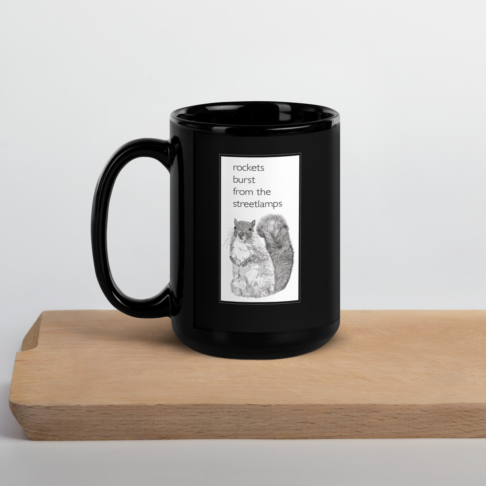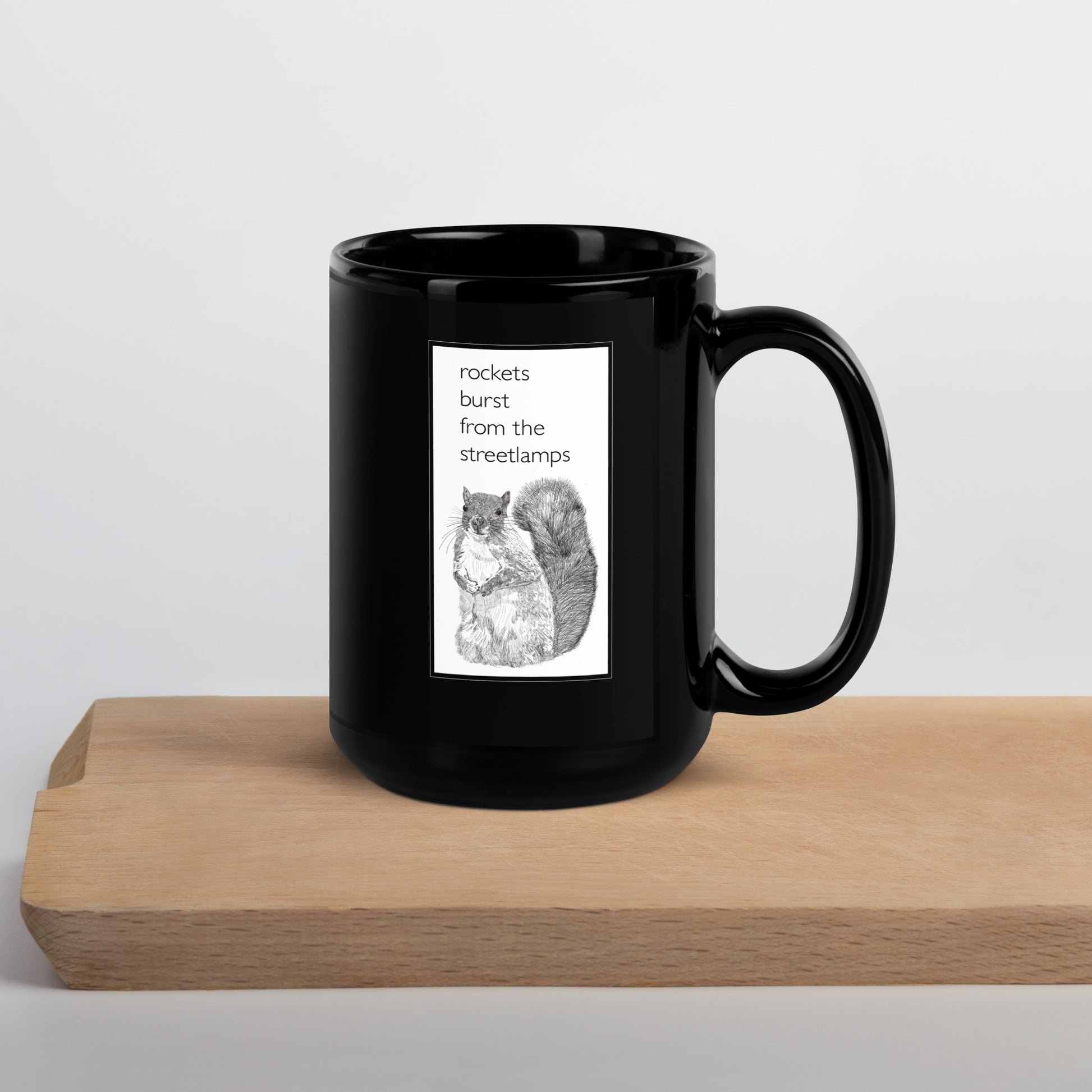 Finally, a properly goth squirrel mug! It's classic, it's black. We had a song called Black. I think it was one of our big hits! It wasn't specifically about fashion, but did involve someone lying on the floor in suit from the 1930s. I can't really divulge more than that. Only that it's not, like, what you think, they weren't dead or anything. It wasn't like a gangland murder or something that might pop into your head when you think of people on the floor in 30s suits. It was more a super sexy cinema noire kind of moment. Noir! Black! Oh, it all comes right round baby, right round.
