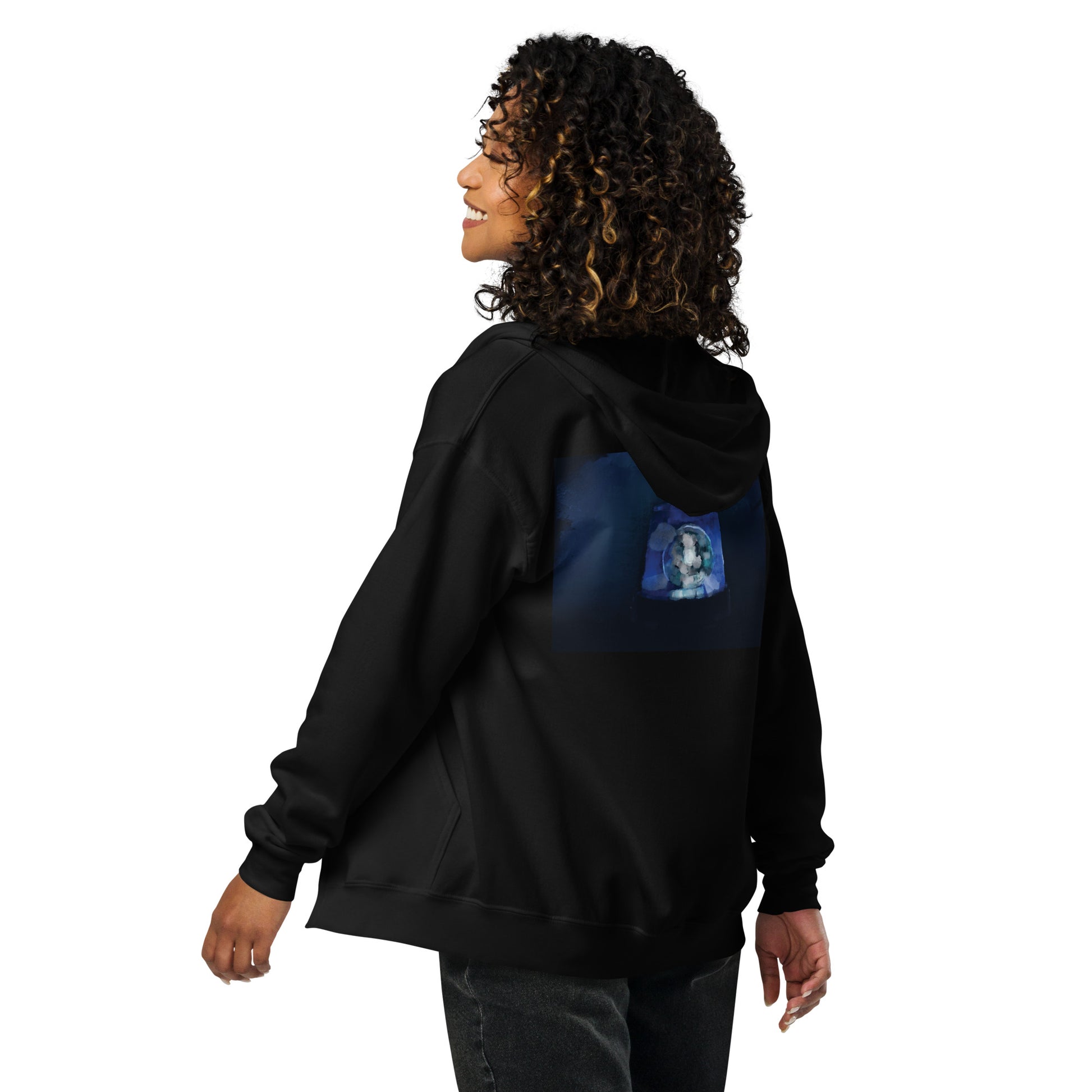 A new painting of our old famous blue raincoat rotating light. Also, a zipper, hood and pockets... my favorite things to have in a fleecy garment.
