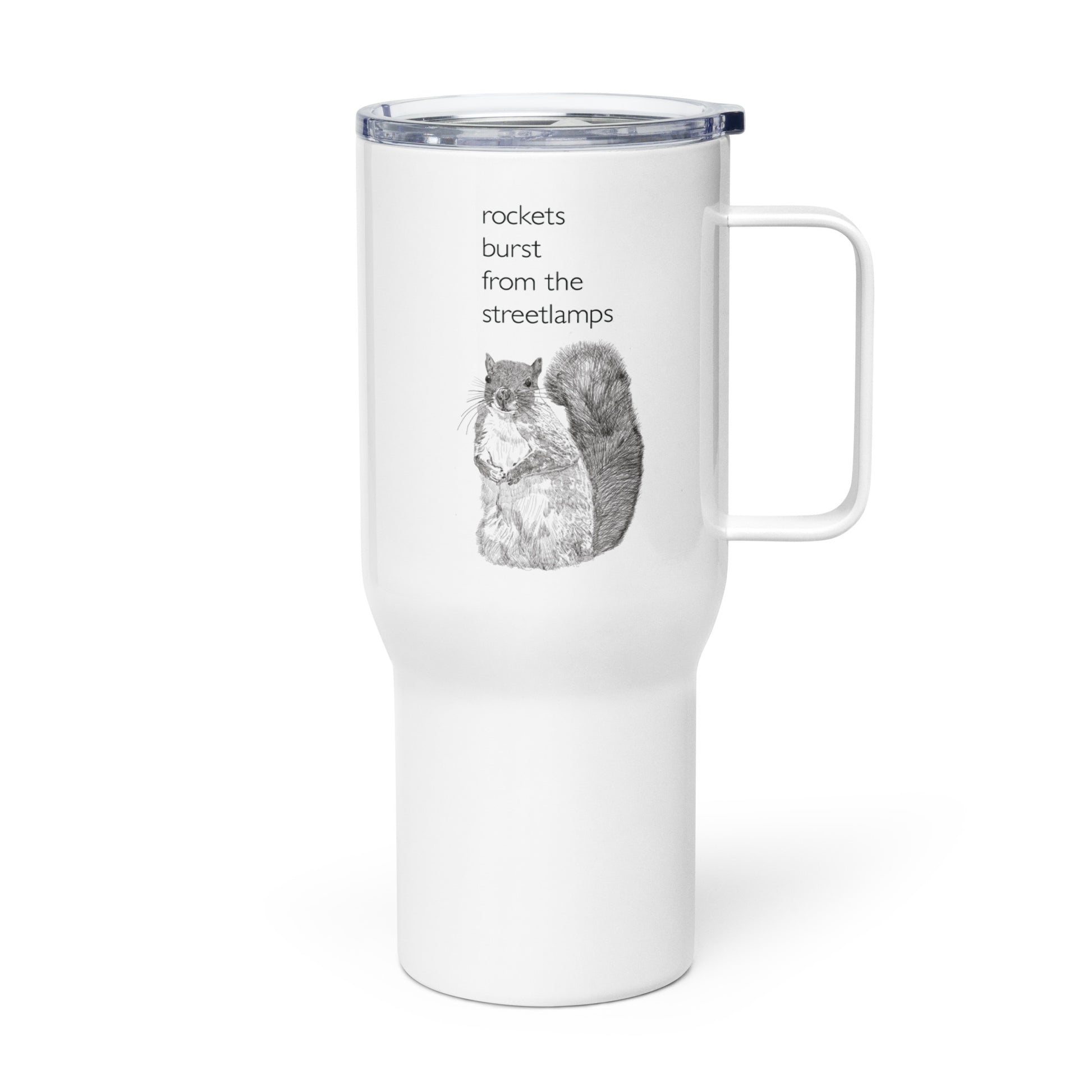 Metal, but not heavy metal. More like shoegaze-spacerock-something-or-other. With a squirrel. Fill it with 25oz of hot or cold beverage. You can even have electrolyte water. But you might prefer coffee.