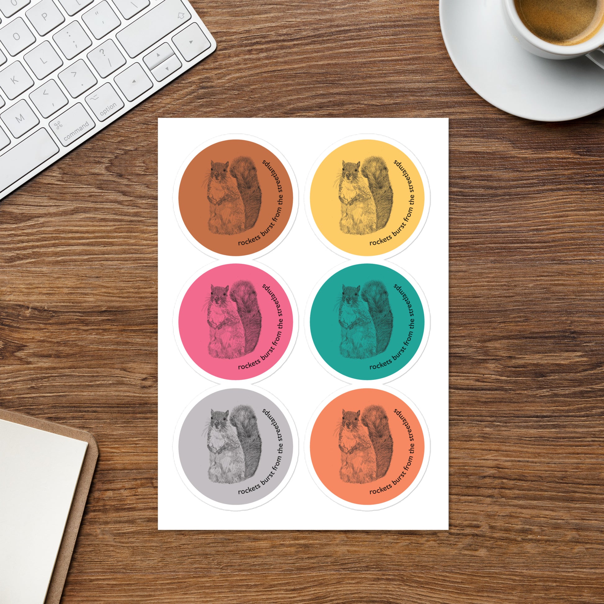 Rockets Burst from the Streetlamps Squirrel Sticker Sheet