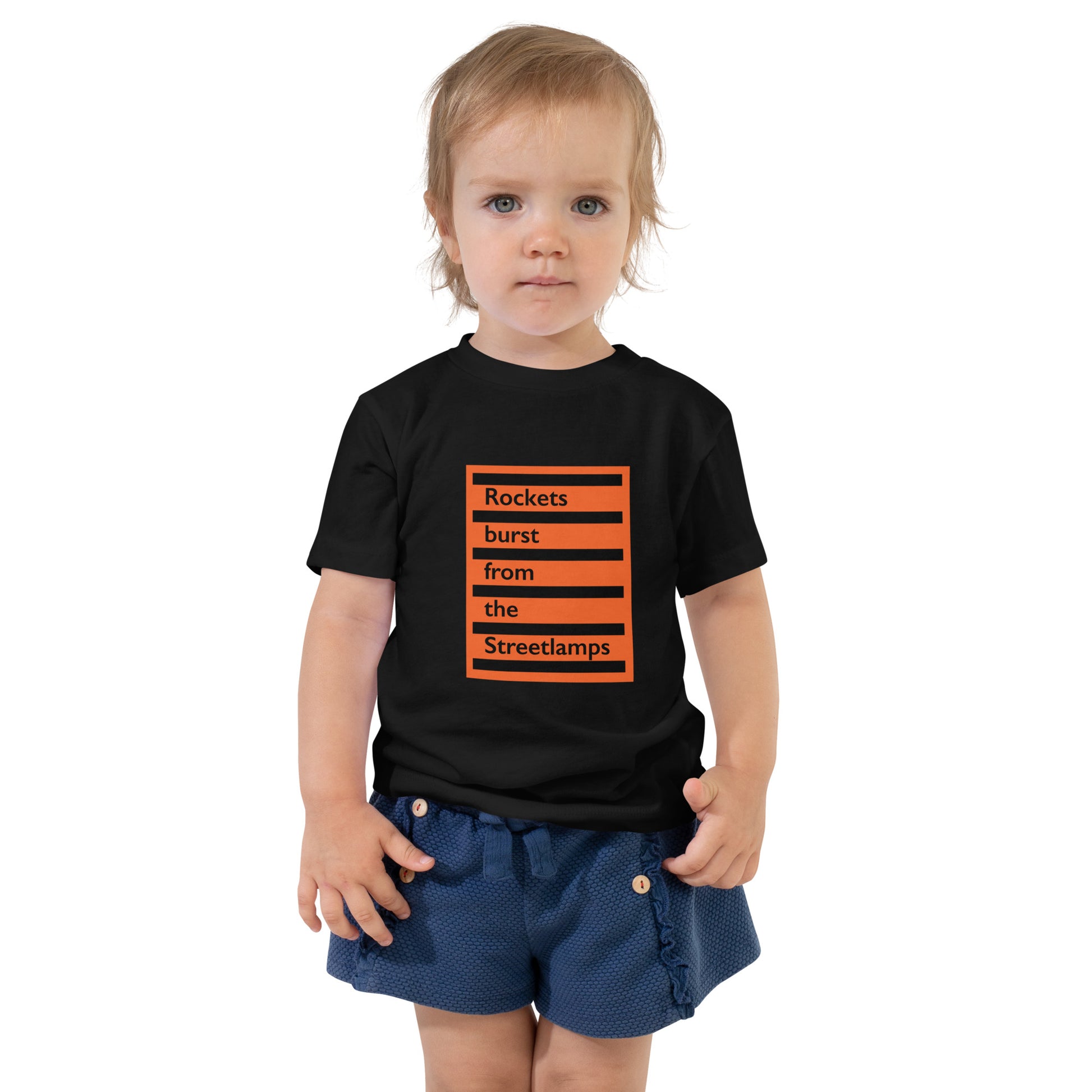 Rockets Burst from the Streetlamps Toddler Big Orange Sticker T-shirt